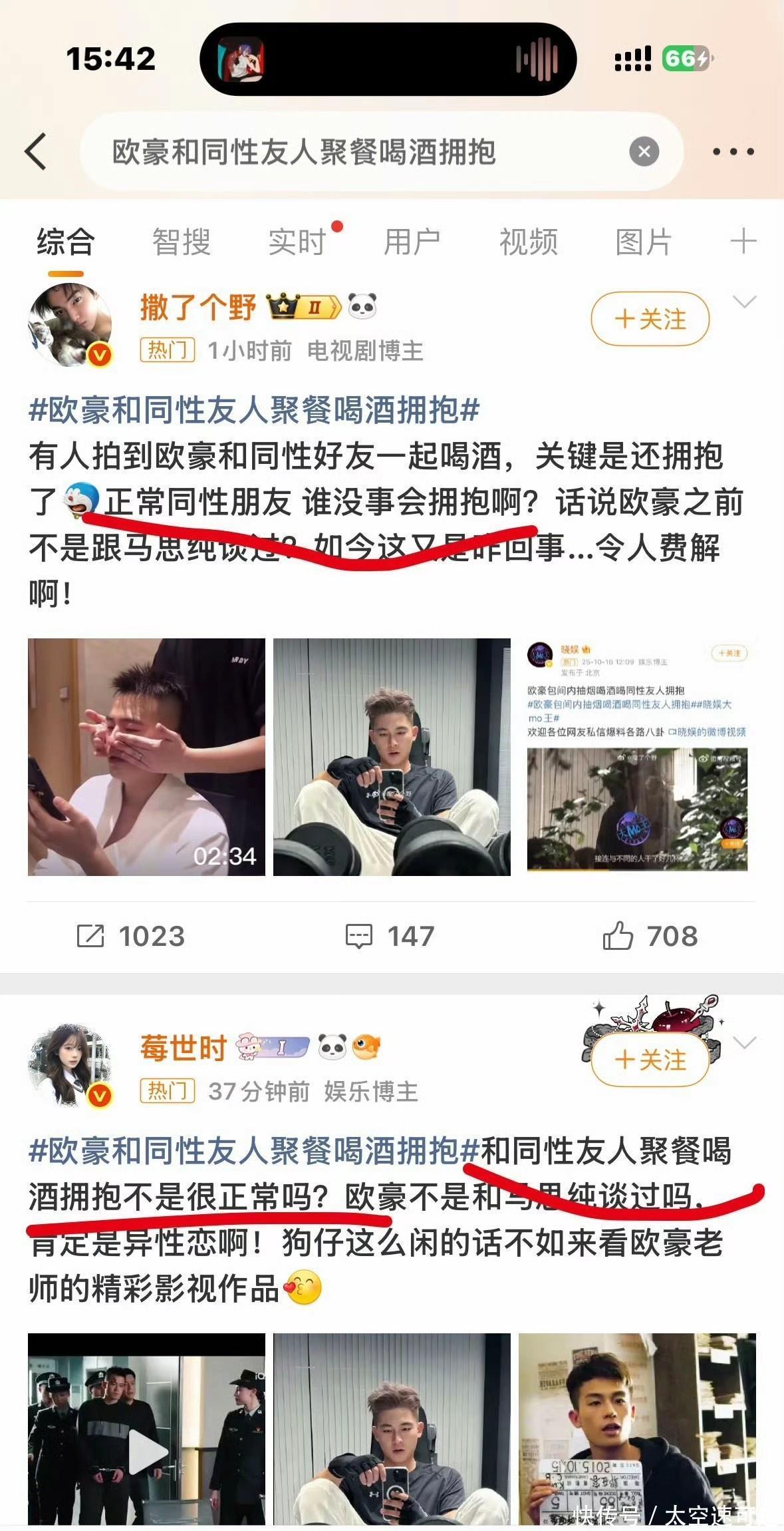 “明星在包间里抽烟喝酒,还和同性友人拥抱?”一则偷拍视频让欧豪瞬间登上热搜,话题阅读量破亿。镜头里,一个普通的告别拥抱被贴上“争议行为”的标签,而评论区却炸出一片反问:“朋友拥抱怎么了?难道明星连私生活都不配有了?”当舆论聚焦于饭局细节时,更多人开始思考:我们究竟该关注艺人的什么?